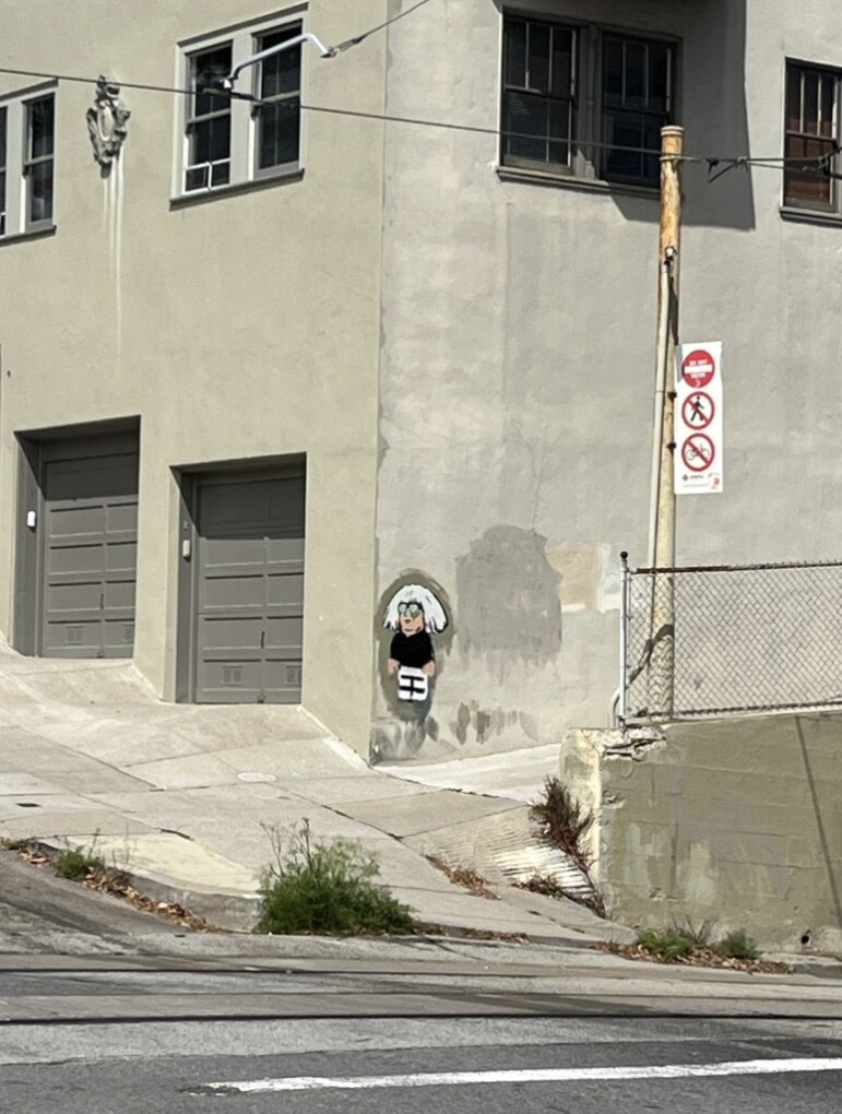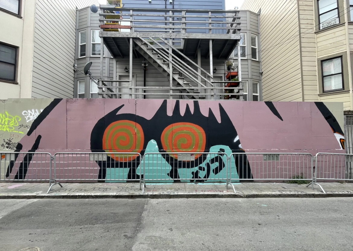 For example, the Ongo on the side of a beige residential building on 21st Street near the Muni train tracks in Mission Dolores has been there since one memorable evening in 2022. It was pitch-black outside, except for the streetlights’ glow. The artist had to take an unexpected break from painting when someone reported him to the police.