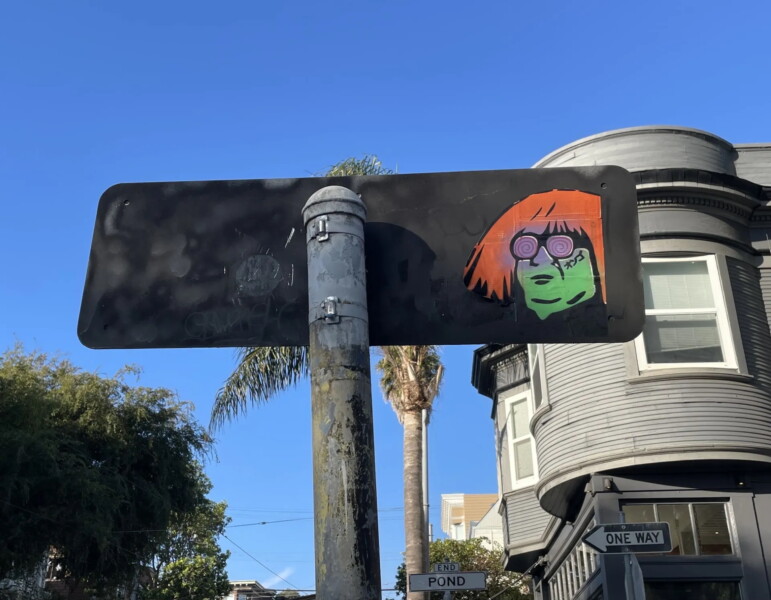 The first public Ongo appeared in 2020 on a pillar outside of All Star Donuts at Clement Street and 10th Avenue in San Francisco. (Photo courtesy of the artist)