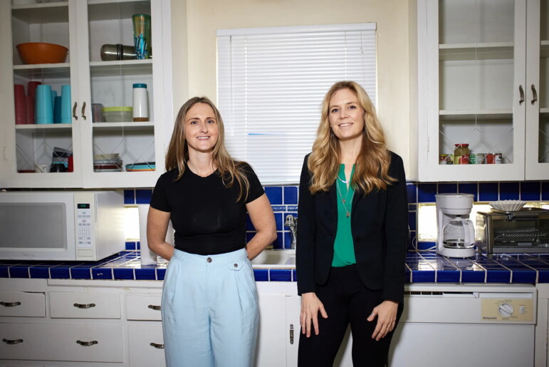 Left to right, Emma Jewett and Leah Slem, staff leaders of the Basic Needs Center at Chico State, stand inside a Rapid Rehousing home in Chico on Feb. 5, 2026. Photo by Salvador Ochoa for CalMatters.