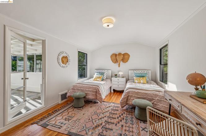 This special home sits at the end of a serene cul-de-sac, just moments from the shops and cafes of Piedmont Avenue and Rockridge. Period details include hardwood floors, wood burning fireplace and cathedral ceiling in the living room. An eat-in kitchen opens to the level deck and back gardens; creating a natural extension of the home for relaxing, gathering, and outdoor play. The main level features a central foyer connecting the dining room, living room, and kitchen, plus a versatile bedroom suite with en-suite bath. Upstairs, two bedrooms and a sunroom overlook the yard.