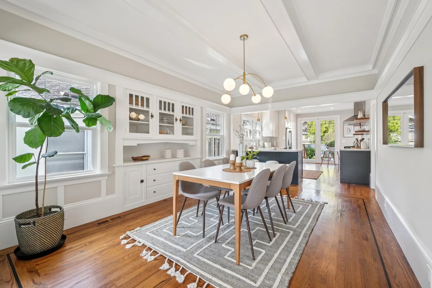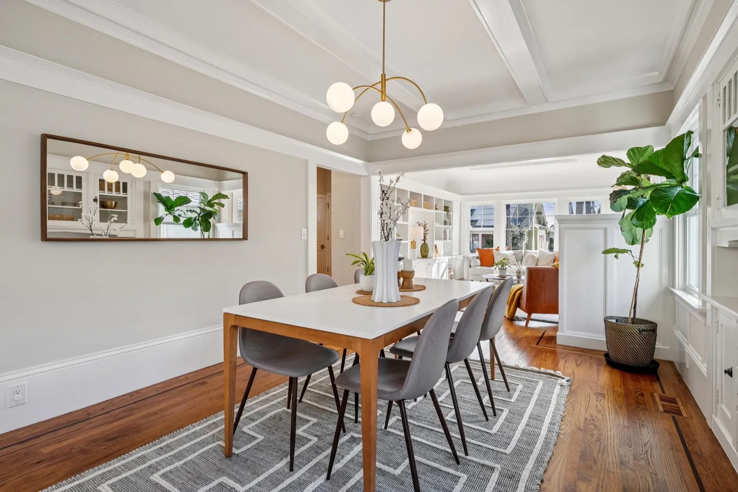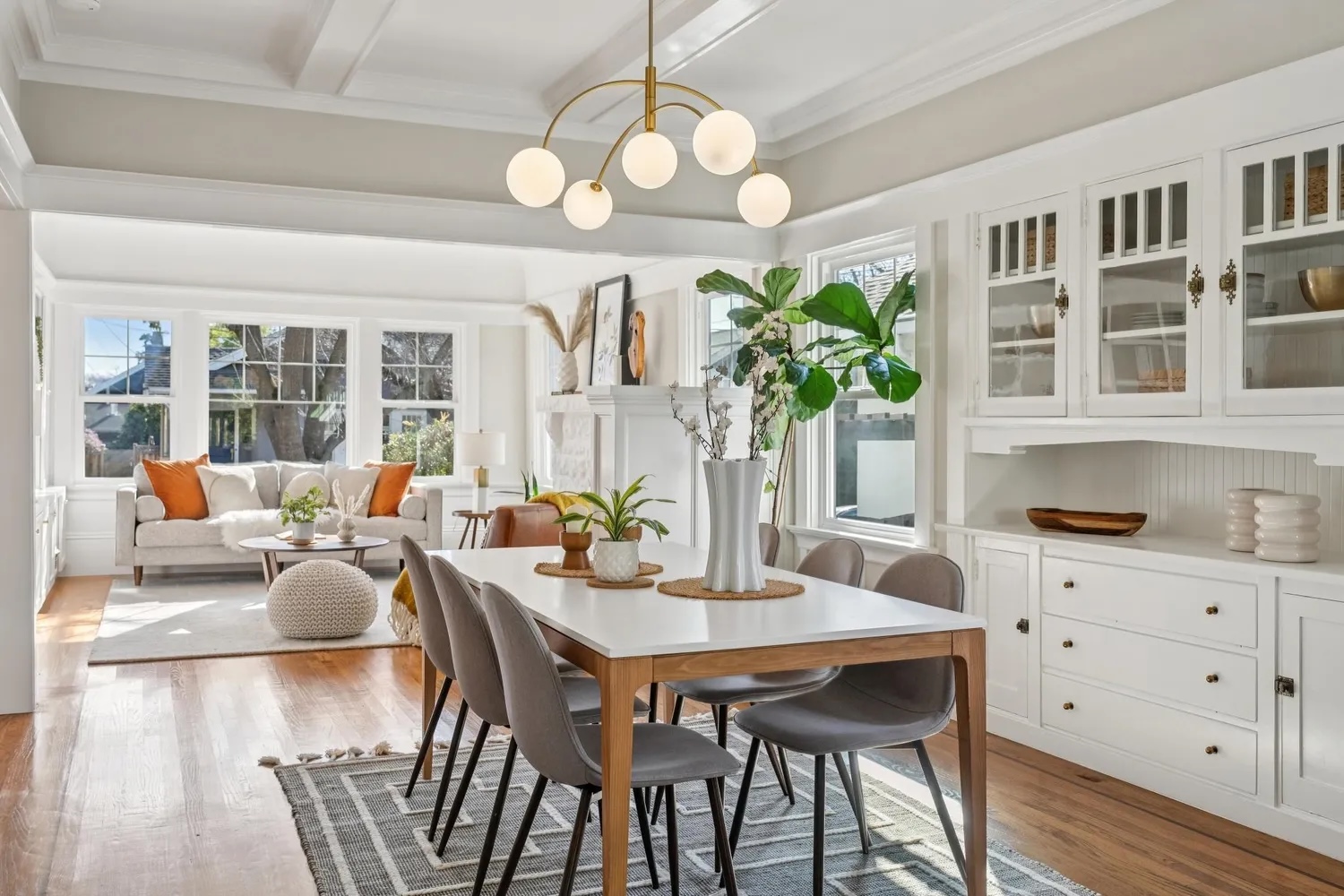 Nestled on a sought-after, tree-lined street in vibrant Temescal, this standout home seamlessly blends character, function, and style. Featuring three spacious bedrooms, two and a half bathrooms, plus a detached studio, it offers two levels of sunlit living space thoughtfully updated throughout. The home’s updated windows, systems, and EV charger provide modern conveniences that enhance the original charm. Step inside the welcoming foyer with built-in bench seating that opens into a cozy living room with a fireplace and custom cabinetry. The dining room with original built-ins and beamed ceiling flows into a beautiful chef’s kitchen with quartz countertops, a six-burner range, pull-out pantry, and a sunny breakfast nook.