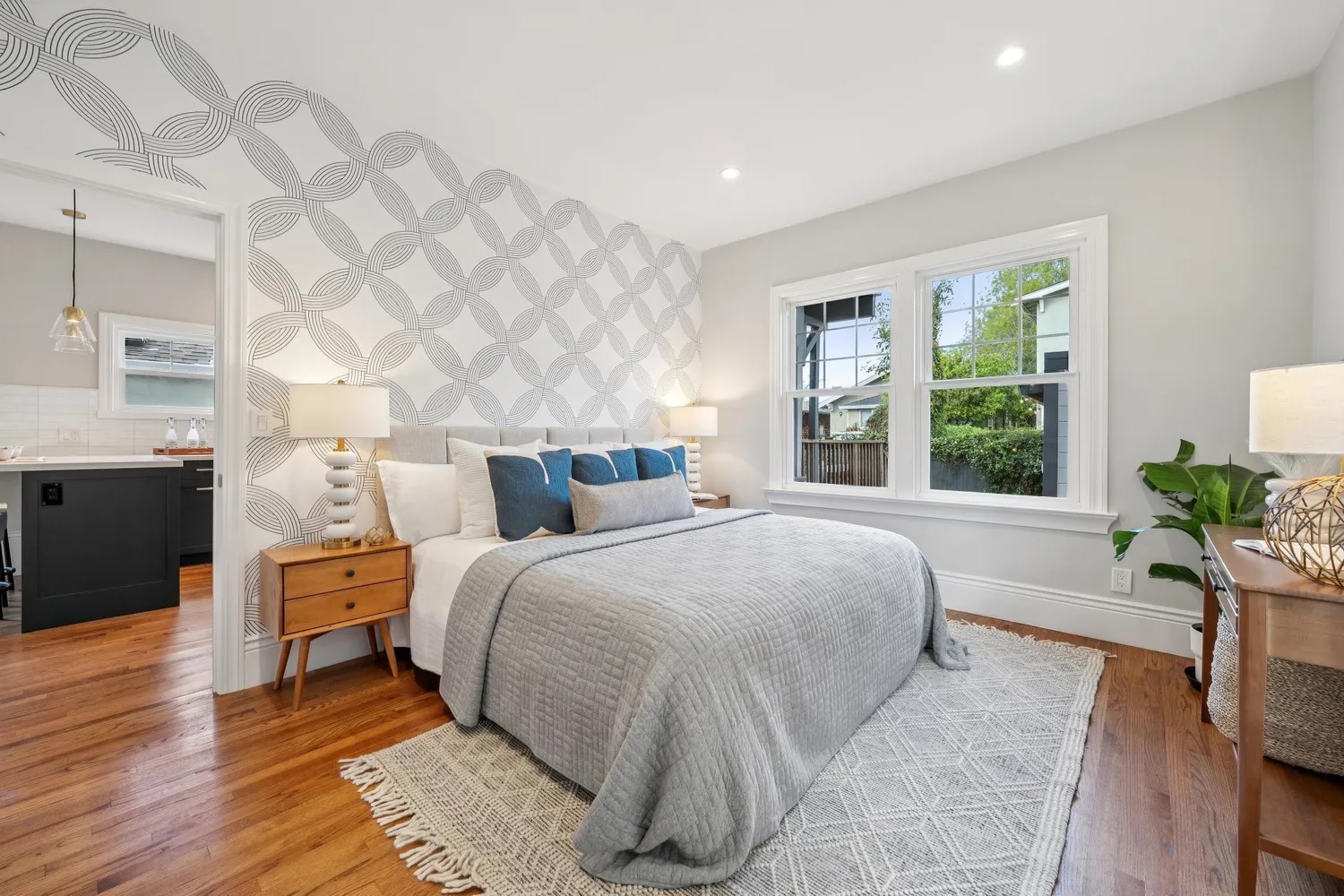 French doors from the kitchen lead to a lovely deck and landscaped backyard for easy entertaining. The versatile detached studio, ideal for an office, gym, or creative retreat, rounds out the outdoor offerings. Back inside, the main level also features a tranquil primary suite with a walk-in closet and spa-like bath. Upstairs is a den with a hidden laundry center, a full bath, and two bright bedrooms with generous closets. The home’s proximity to top eateries, eclectic shops, and parks in Temescal and Rockridge means the location can’t be beat! Come fall in love!