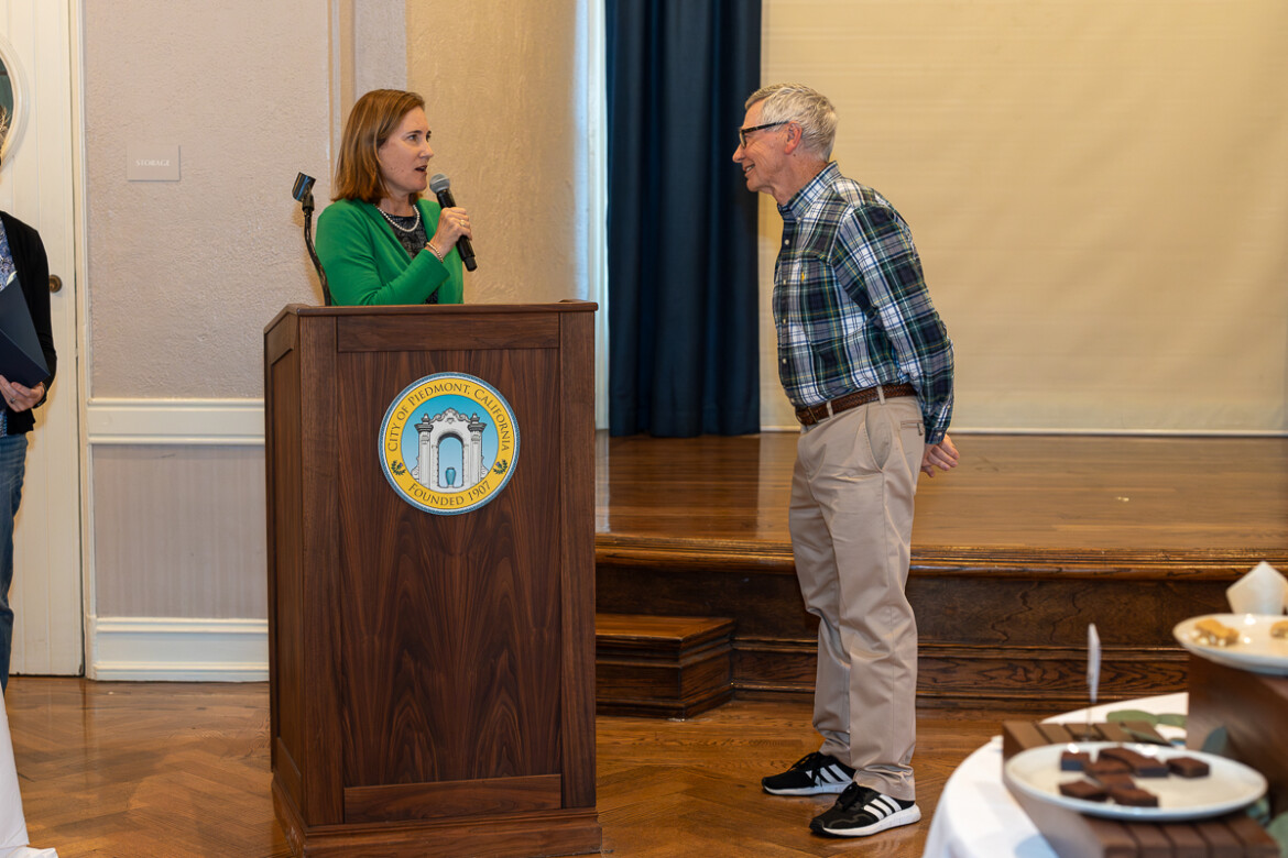 Mayor Betsy Smegal Andersen recognizes Dick Carter in April 2025 for his volunteer service on the Recreation Commission.