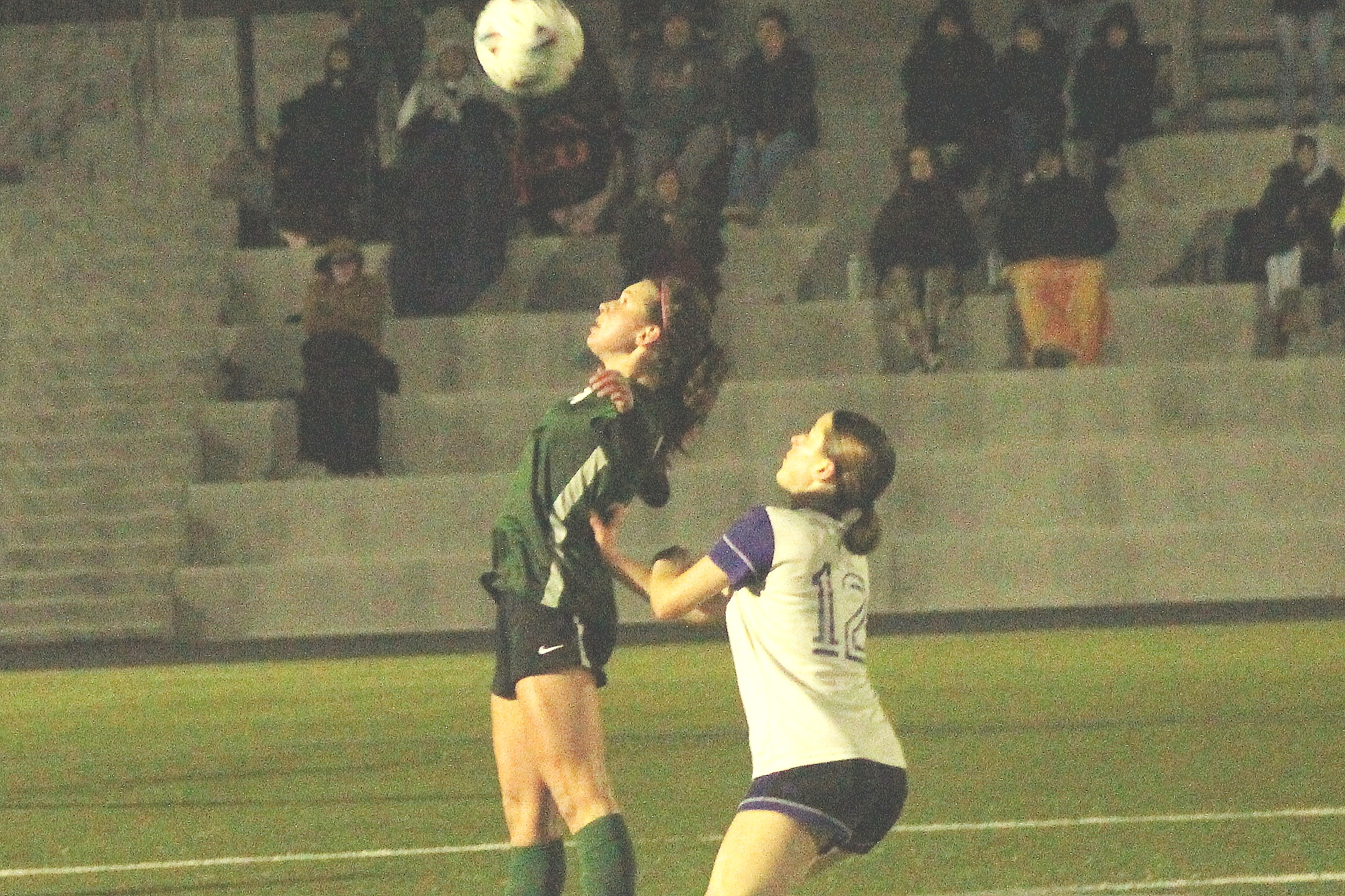 Arden Sorensen-Wald (12) fights Sonoma Academy’s Elaina Bruntlett (22) for the ball. Bruntlett had both Coyote goals in a 2-1 overtime win.
