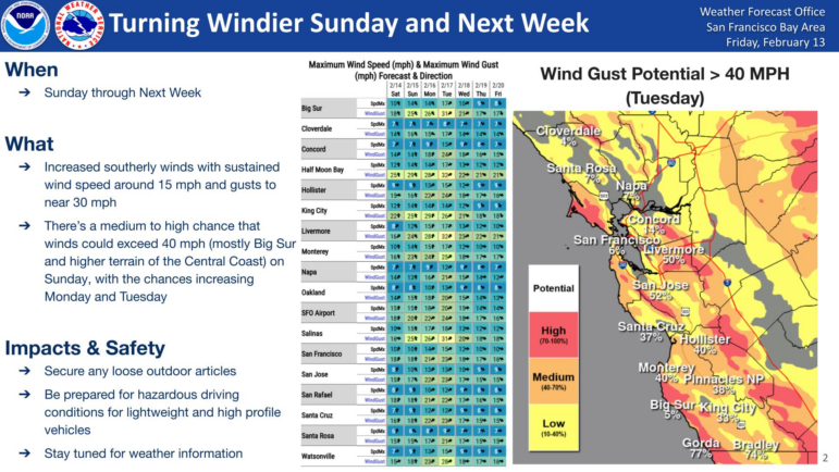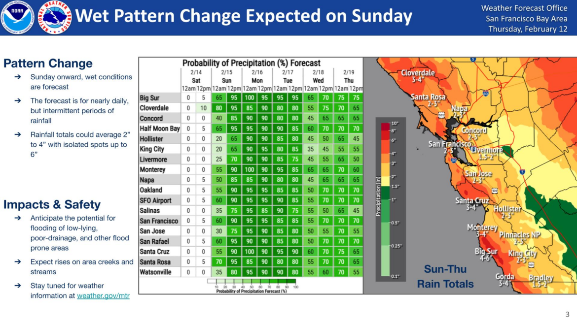 The National Weather Service says dry weather will hold through Saturday morning before widespread rain and gusty winds return late Saturday and continue into much of next week.