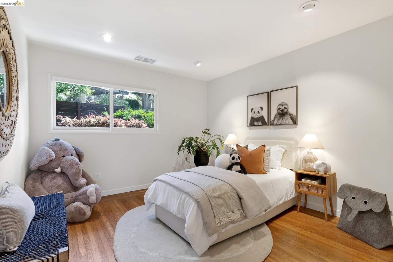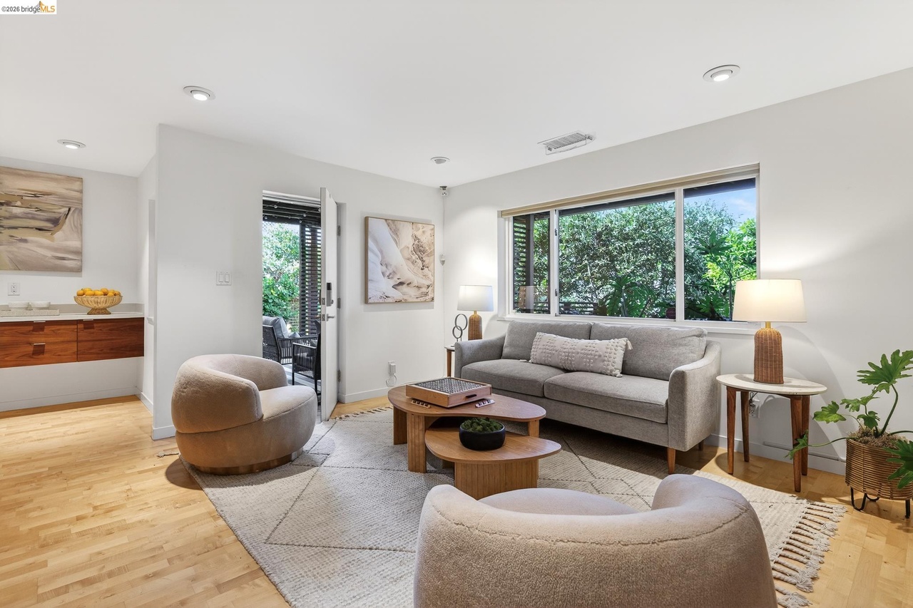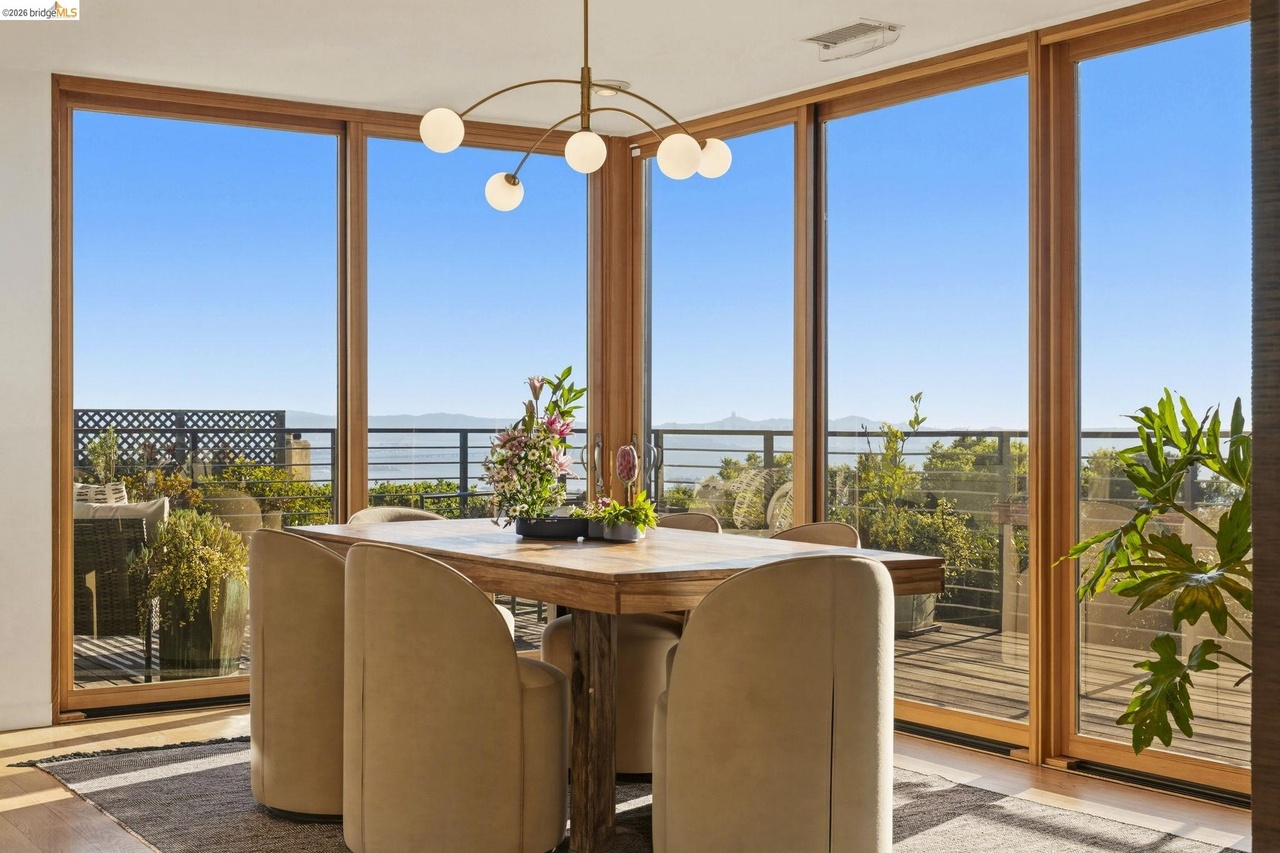 470 Spruce Street is a stylish 1955 Mid-Century Modern home built on strong architectural principles evolved for today’s lifestyle needs with panoramic views. The uninterrupted living mural of the Bay Bridge, Golden Gate bridge, San Francisco city skyline and shimmering waters of the bay immediately draw you into this sanctuary of light. At 2,833 square feet across two levels, with level-in entry and a primary suite on the main floor, the scale and accessibility here are genuinely uncommon in the Berkeley Hills.