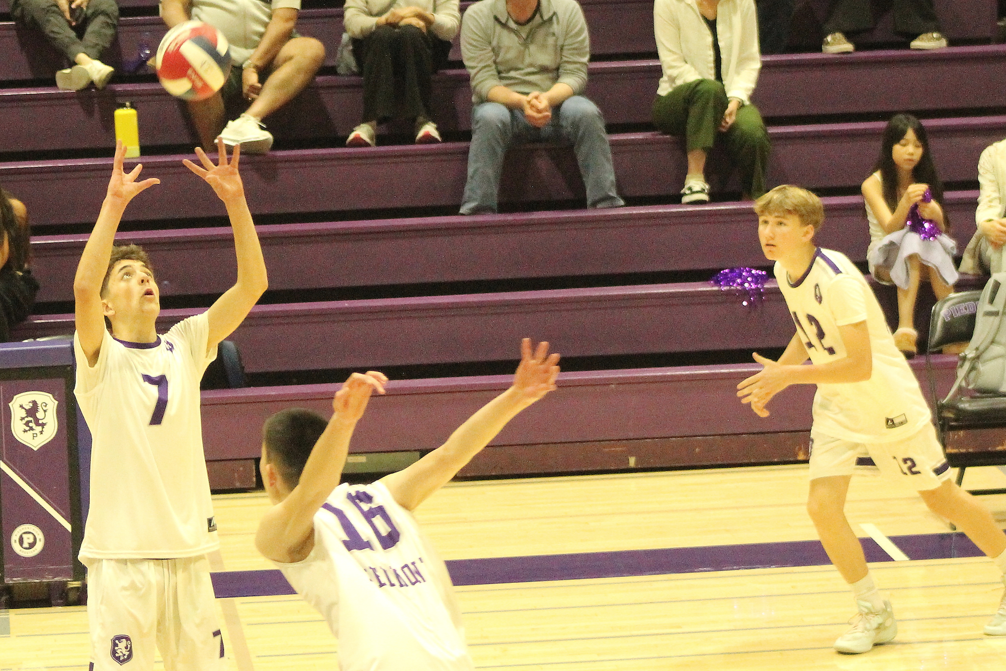 Nate Spong (7) sets the ball for Kanoa Glass (16) and Rob Koch (12)