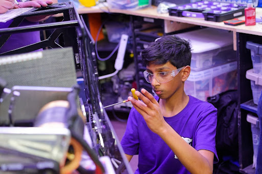 Pit member Sattvik Sapuram works to maintain Wisp between rounds.