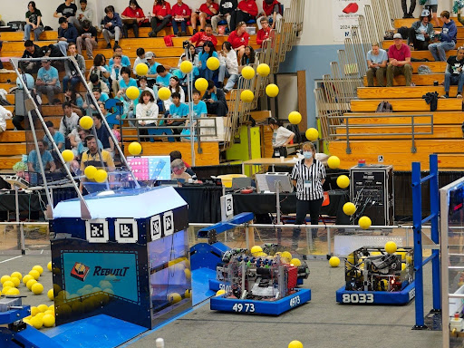 The FIRST Robotics Competition announces a new game each January, played by two alliances of three robots in an arena roughly the size of a basketball court. Roughly 3500 teams of 9th to 12th graders construct an entirely new robot each season and competitions begin 8 weeks after kickoff. In this year’s game called Rebuilt, robots shoot 6-inch foam balls into an 8 foot high funnel while crossing field obstacles and climb rungs of a ladder before time runs out.