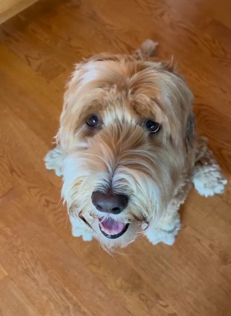 Interesting facts: Hazel has very human eyes. Her eyes are big and brown and seem to have many layers of emotion. She will lay down and if you look into her eyes then she goes in for a kiss. If you stare at her from across the room she looks back at you and gets excited and darts towards you. When she is happy her eyes really light up, but when she knows she did something bad — like eating food off the table — her eyes go into regret mode and she begins to look very sad.