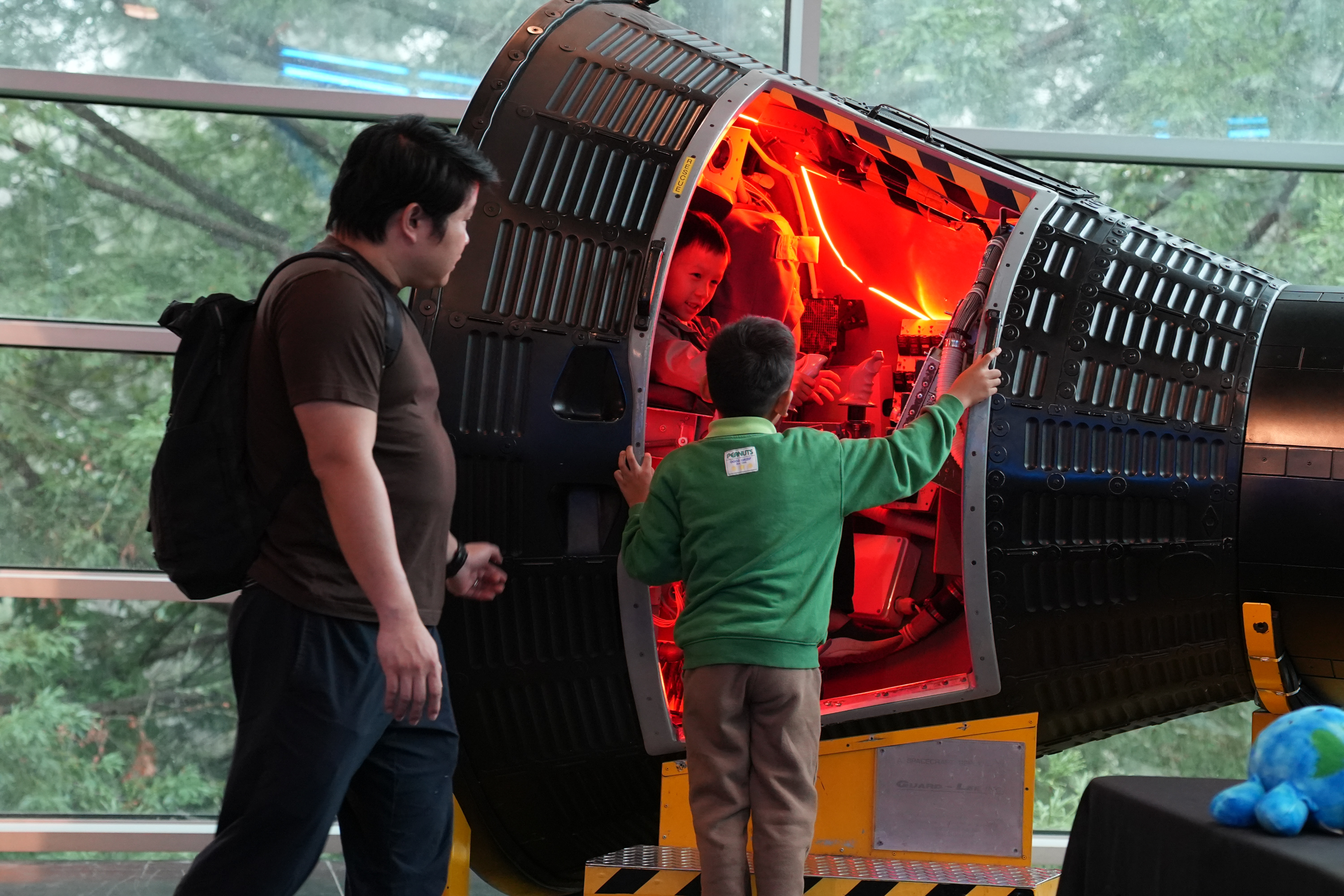 Monica Martinez and her daughter Sophia stepped inside a replica of the Project Mercury capsule, playing with the control stick and buttons. Monica was overjoyed to see her child’s eyes brighten when looking at the exhibits.