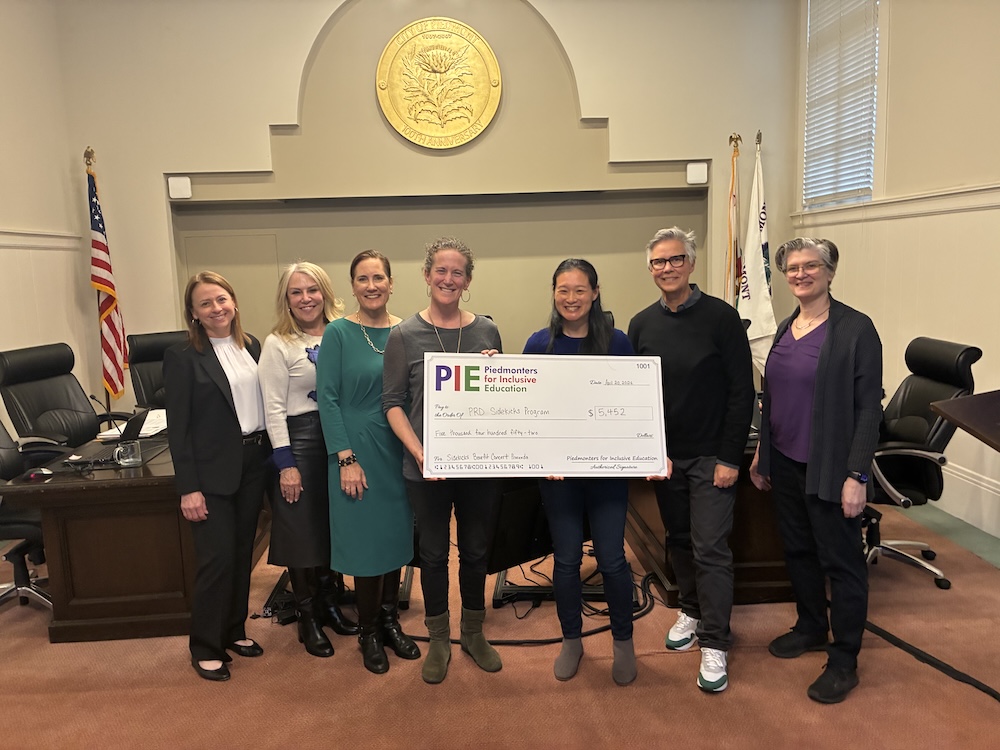 Piedmonters for Inclusive Education (PIE) presented a check of $5,452 to the Piedmont Recreation Department’s Sidekicks program at the April 20 City Council meeting. PIE Board President Betty Rojas made the following remarks: