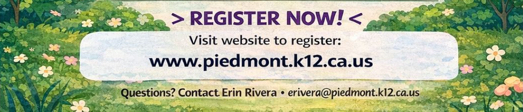 Piedmont Athletics Summer Sports Camps: Basketball and Flag Football for kids entering 1st-8th grade. Led by experienced coaches, these camps focus on skill development, teamwork, and game play in a fun and supportive environment. Perfect for all skill levels, campers will build confidence while staying active this summer!