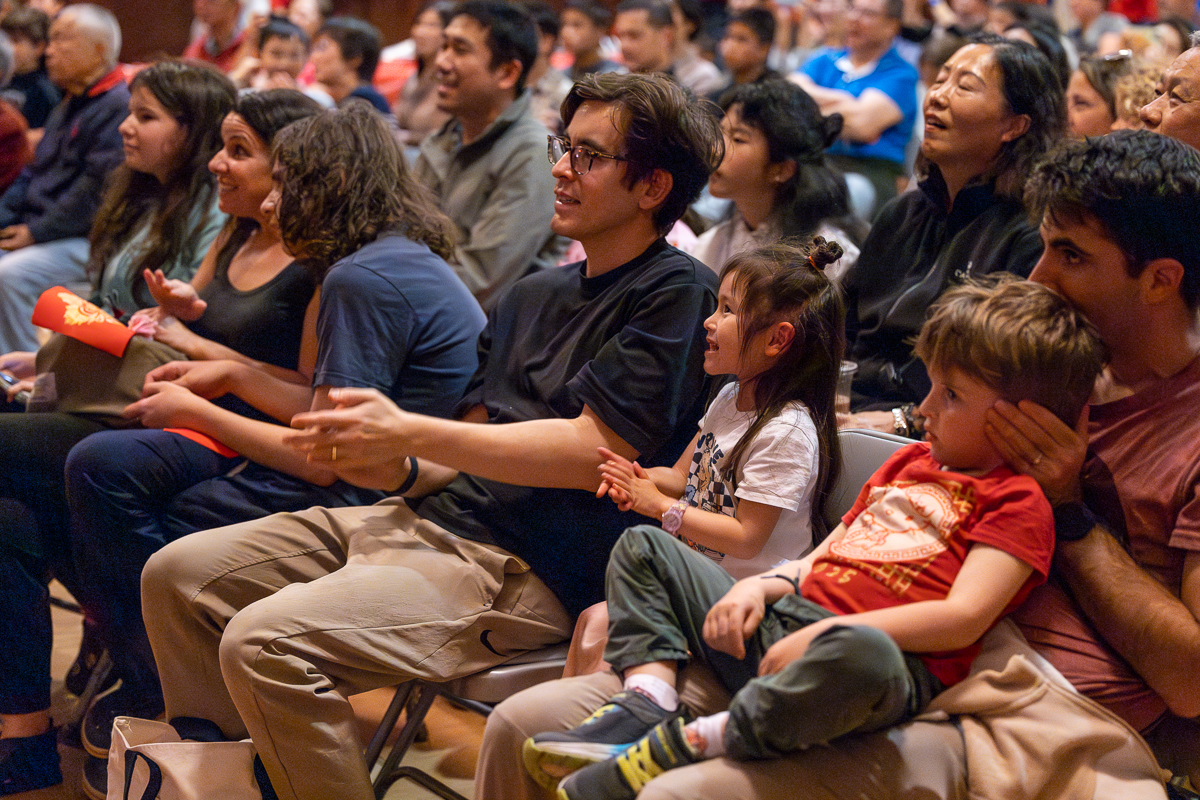 Attendees watch the lion dance performance