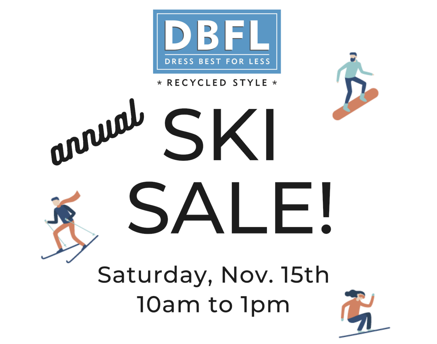 Around Town DBFL holds Annual Ski Sale on Saturday, Nov. 15 By Dress Best for Less | November 4, 2025 Don't miss this once-a-year giant outdoor sale of gently used ski and snowboarding jackets, bibs, pants, and accessories for the whole family.