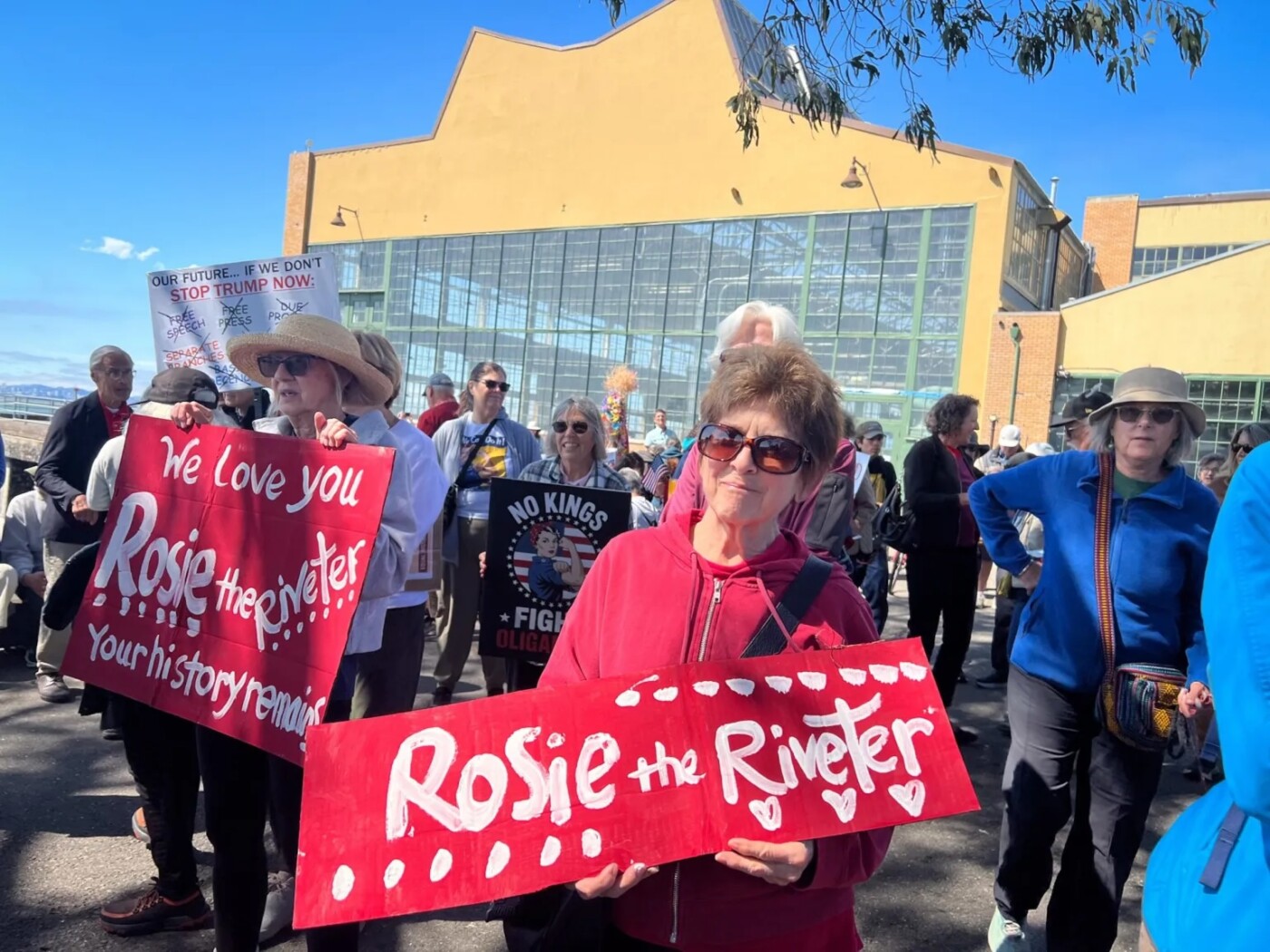Over a hundred people gathered on Monday to protest what they say is the Trump administration’s attack on American history at Rosie the Riveter Park in Richmond.