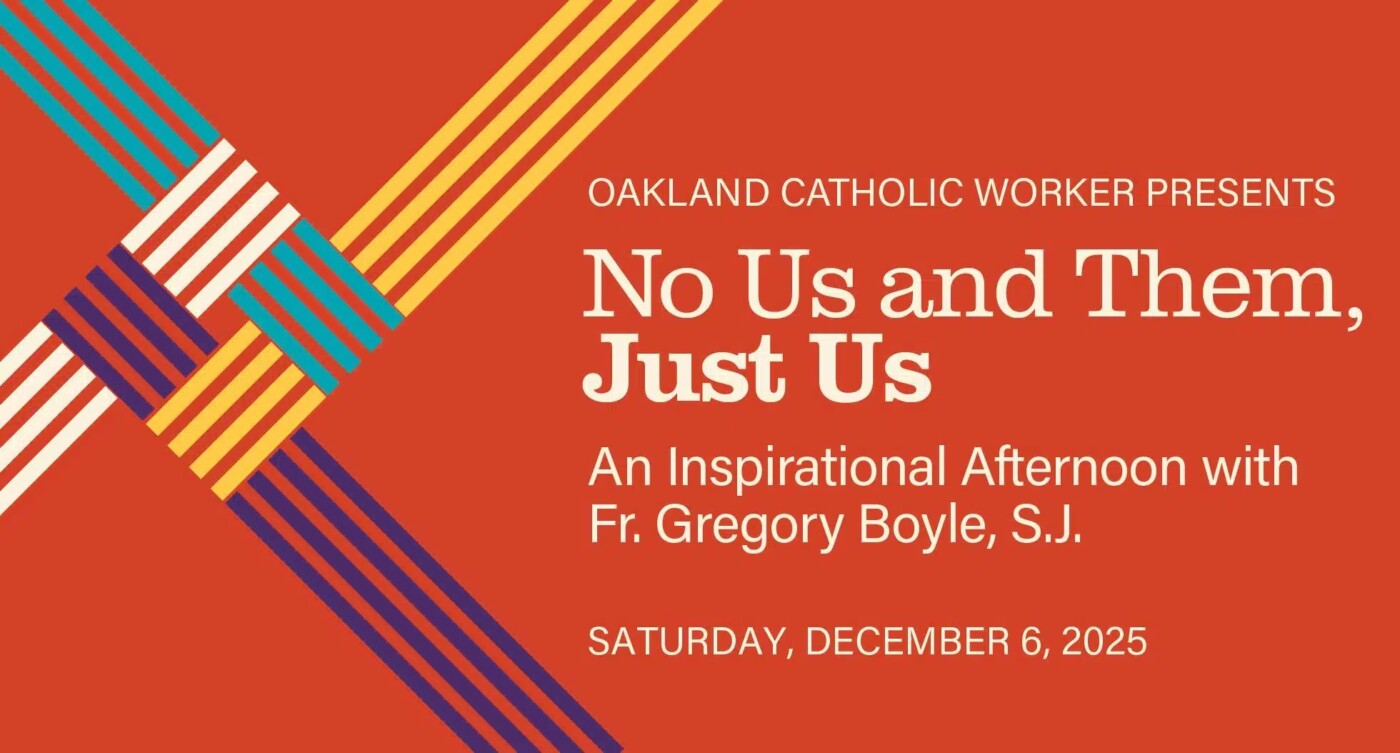 Arts & Entertainment ‘No Us and Them, Just Us’: An inspirational afternoon with Fr. Gregory Boyle, S.J. By Katherine O'Connor | November 21, 2025 Oakland Catholic Worker to host the nationally recognized speaker on Dec. 6 to raise funds to support immigrant families in the East Bay.