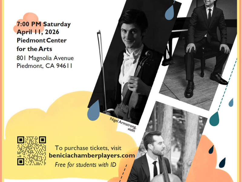 ‘Storm and Song: Romantic Piano Trios Across Europe’ at PCA on Saturday By Piedmont Center for the Arts | 12 hours ago Catch the Benicia Chamber Players at 801 Magnolia Avenue at 7 pm.