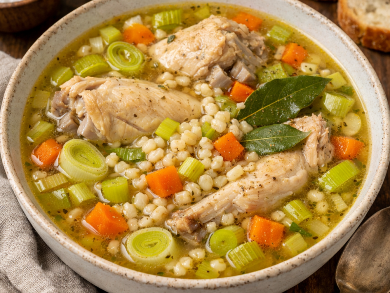 The Dish | Chicken Barley Soup By Ellen Wilson | December 16, 2025 Just in time for the rainy days ahead -- hearty chicken barley soup, comforting and nourishing.