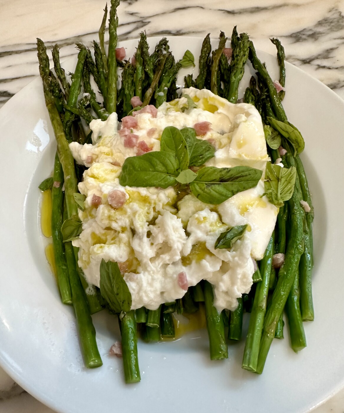 Food & Drink The Dish | Roasted Asparagus with Burrata By Katie Goldberg | April 29, 2025 Fresh, crisp asparagus meets creamy burrata in this simple yet elegant dish — the perfect springtime combo.
