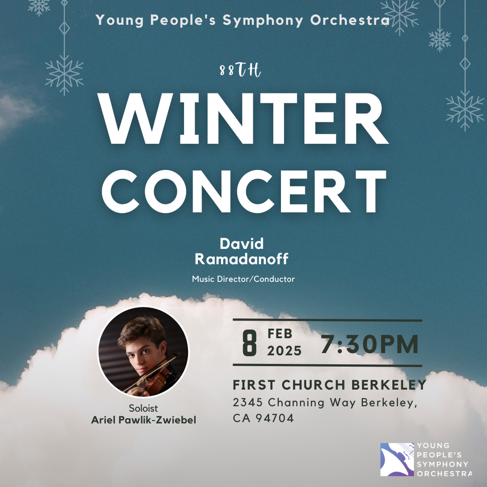 Arts & Entertainment Young People’s Symphony Orchestra performs Winter Concert on Feb. 8 in Berkeley By Young People's Symphony Orchestra | January 14, 2025 YPSO's 88th season concert features work by Cavaterra, Sibelius, and Dvorak.