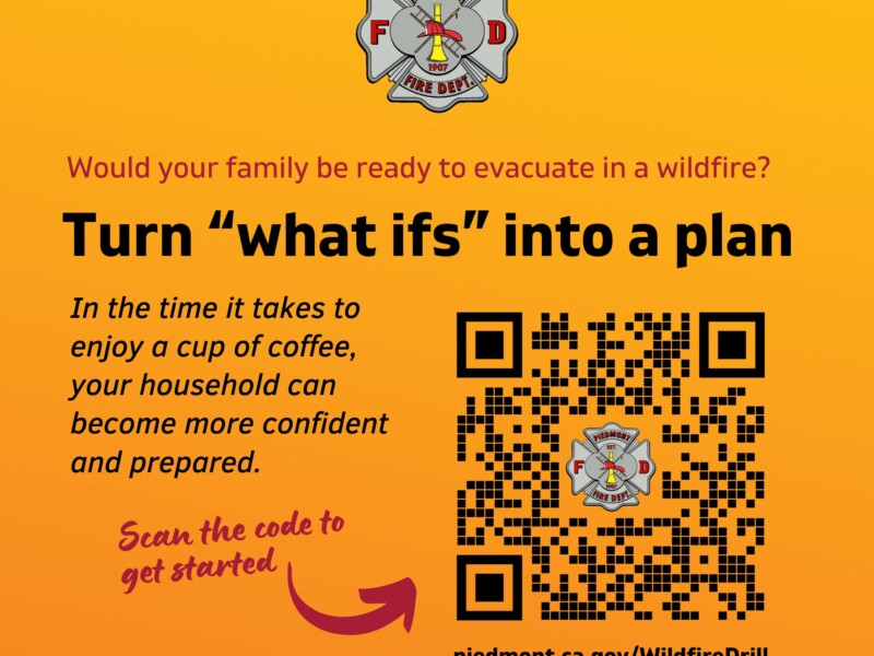 Fire Department encourages residents to complete at-home wildfire evacuation exercise By City of Piedmont | September 23, 2025 Scan a code and take the time to turn “what ifs” into a plan.