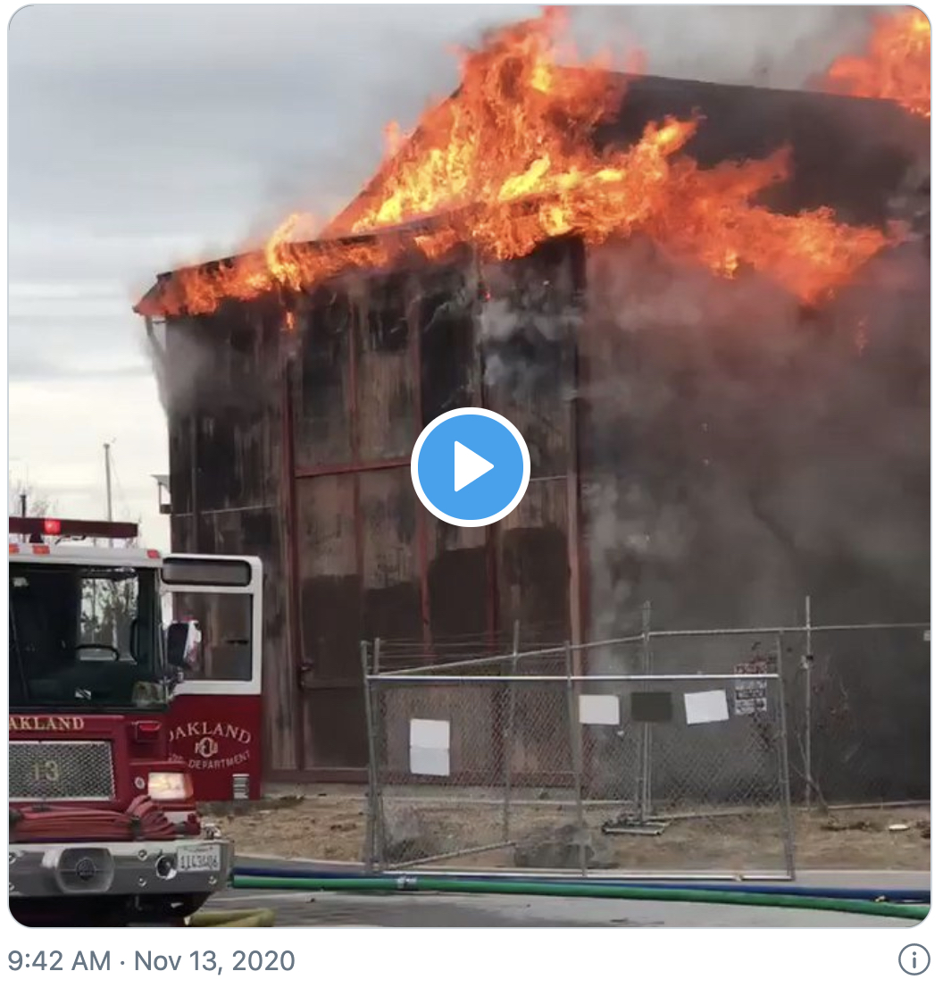 Bay Area Firefighters battle three-hour fire along Oakland estuary By Keith Burbank | Bay City News | November 13, 2020 Two-alarm fire in unoccupied building brought under control after three hours.