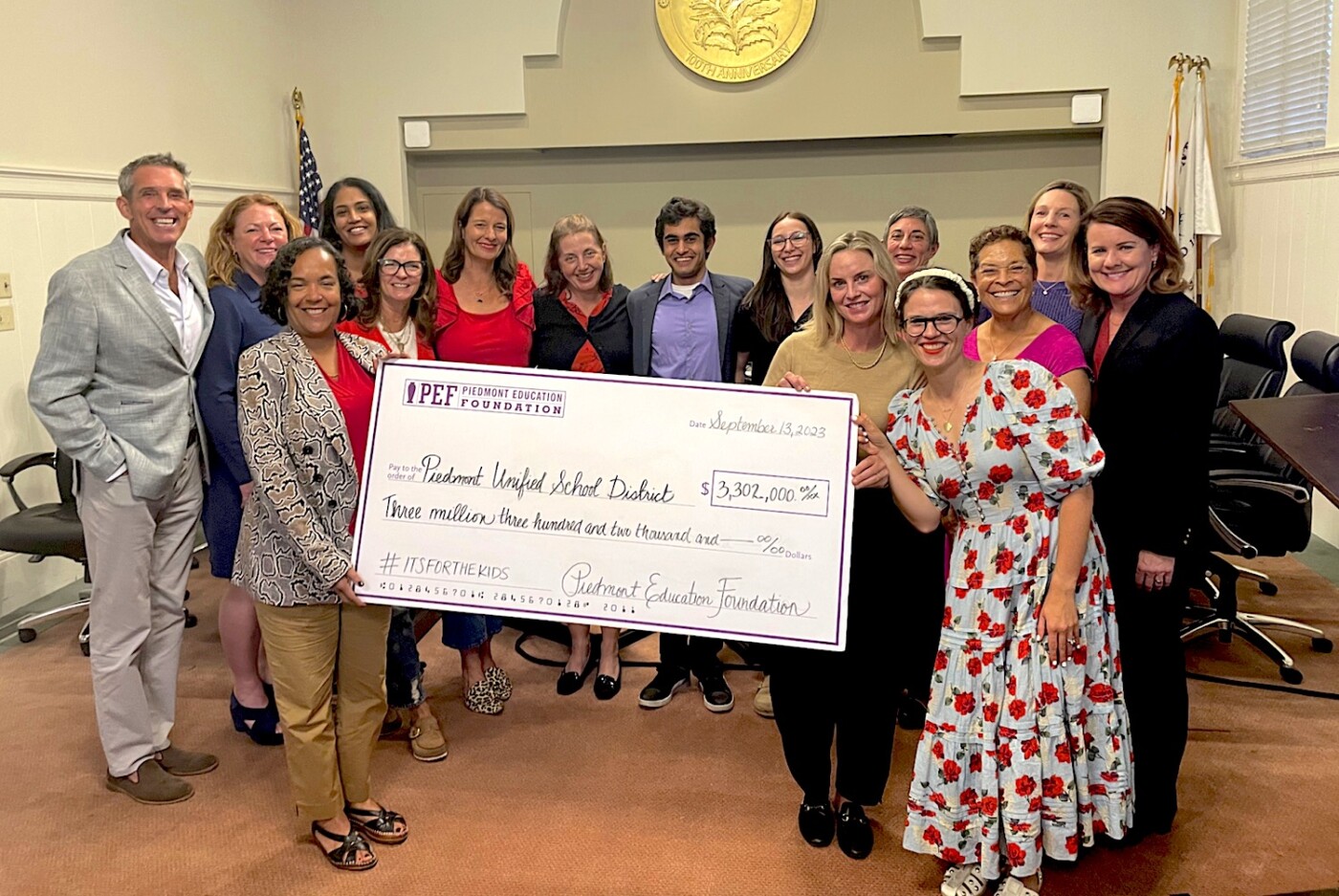 Featured in Category PEF presents PUSD with $3,302,000 check for 2023-2024 school year By Piedmont Education Foundation | September 19, 2023 Also: with a goal to raise $3.5 million to minimize next year's school funding gap, PEF kicks off this year's Giving Campaign.