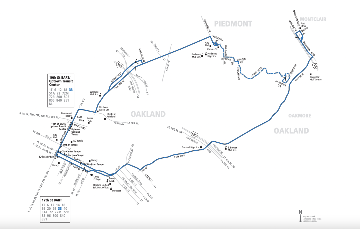 Featured in Category Bus line 33 service is restored to upper Piedmont By Exedra Staff | July 26, 2022 AC Transit is restarting the 33 loop that runs from Highland up to Estates and back starting August 7.