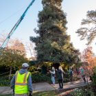 Around Town Photos | Many hands make light(s) work By Photos by Julie Reichle | November 30, 2021 City staff and volunteers trimmed the Coast Redwood at Community Hall ahead of Wednesday night's Holiday Tree Lighting event.
