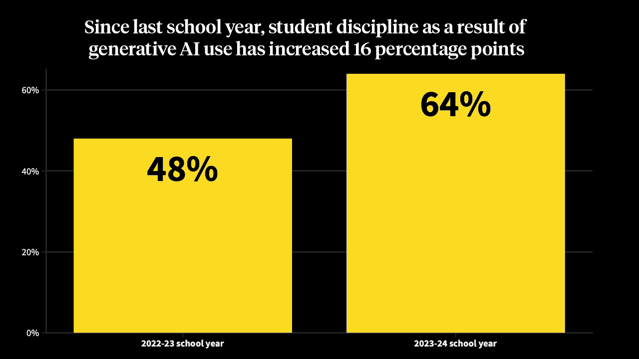 Education ‘Distrust, detection & discipline:’ new data reveals teachers’ ChatGPT crackdown By Mark Keierleber | The74 | April 9, 2024 As students turn to generative AI for schoolwork, educators grow more wary of their pupils’ academic integrity.