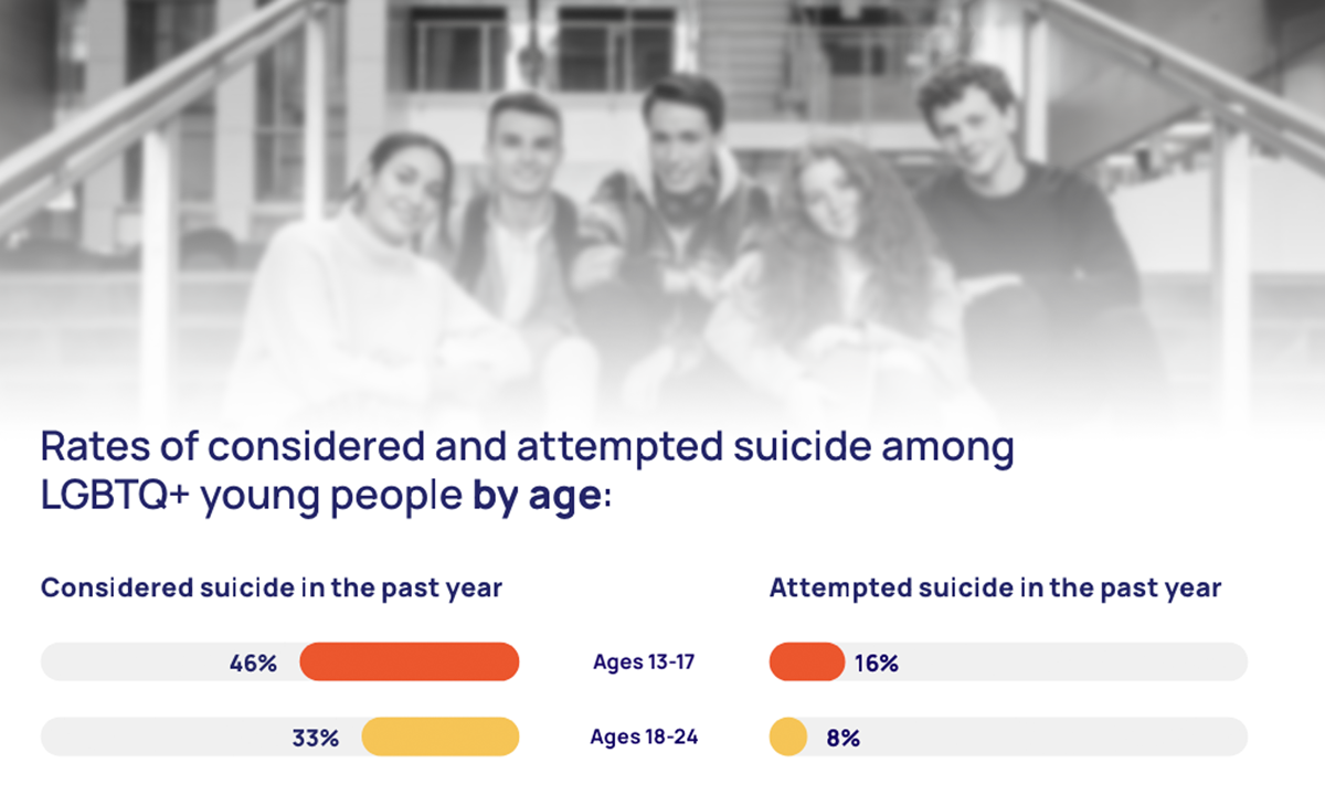 News 40% of LGBTQ youth considered suicide in last year, 30% victimized in school By Beth Hughes | The74million.org | May 1, 2024 National study found lower rates of suicide, anxiety and depression reported where in-school support systems exist.